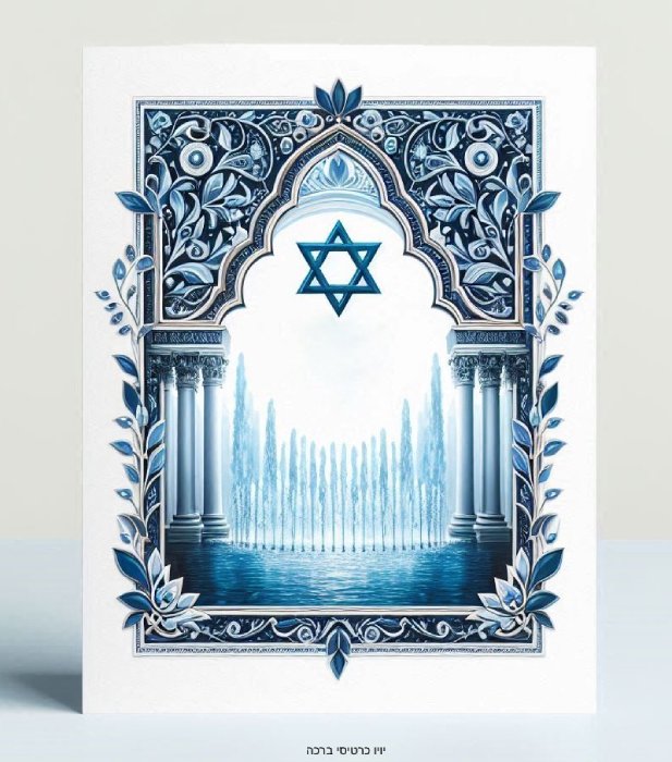 כרטיס ברכה עם מגן דוד ומזרקות מים לחג שבועות