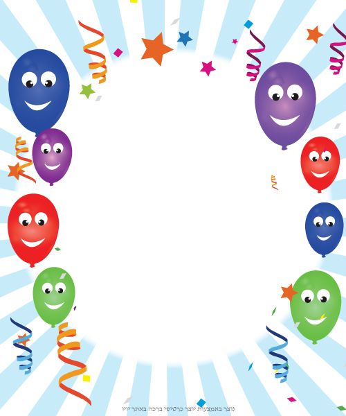 כרטיס ברכה מגניב עם בלונים מחייכים , מתאים להרבה אירועים : יום הולדת , לידה , ברית ,