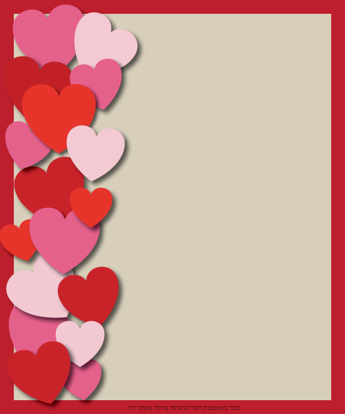 כרטיס ברכה עם הרבה לבבות כרטיס ברכה עם הרבה לבבות בצד שמאל , כתבו את הברכה מצד ימין תוכלו לכתוב על הברכה , להדפיס אותה או לשמור במחשב כתבו פה את הברכה שלכם לחצו פעמיים בכדי לערוך את הטקסט