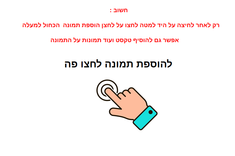 לחצו על היד למטה – הוסיפו תמונה , לאחר מכן לחצו על הוספת תמונה הכחול למעלה