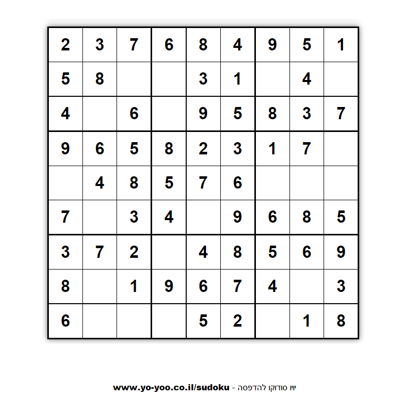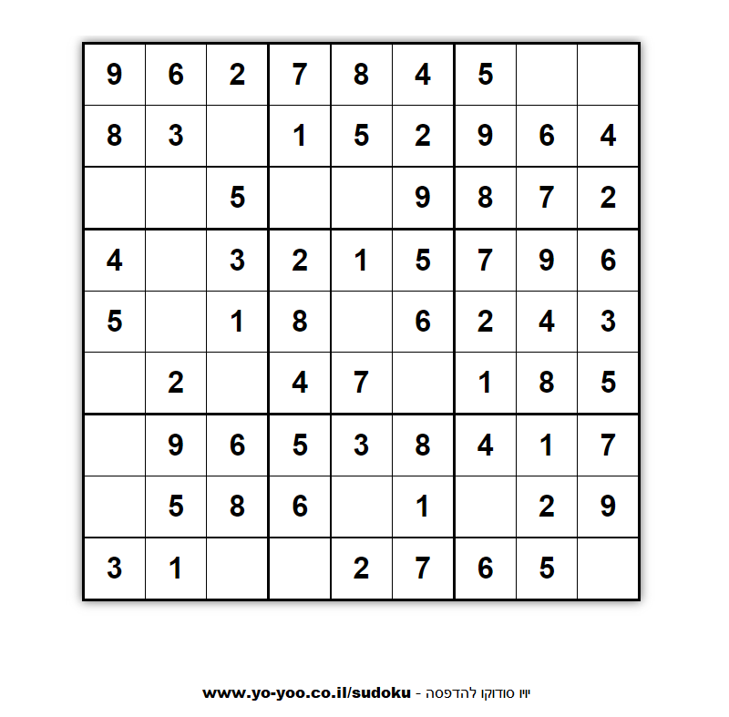 לוח סודוקו להדפסה 9 על 9