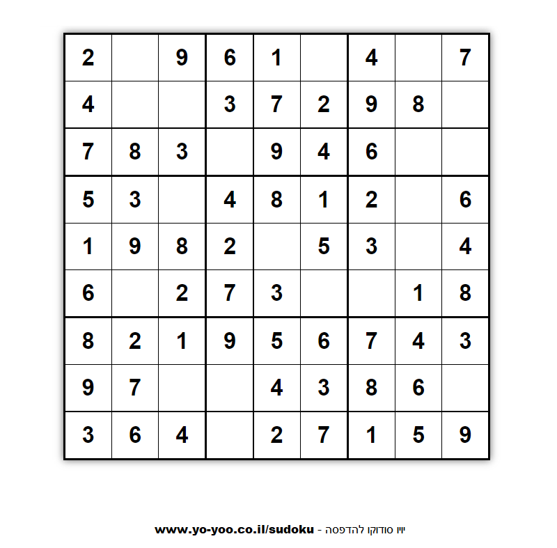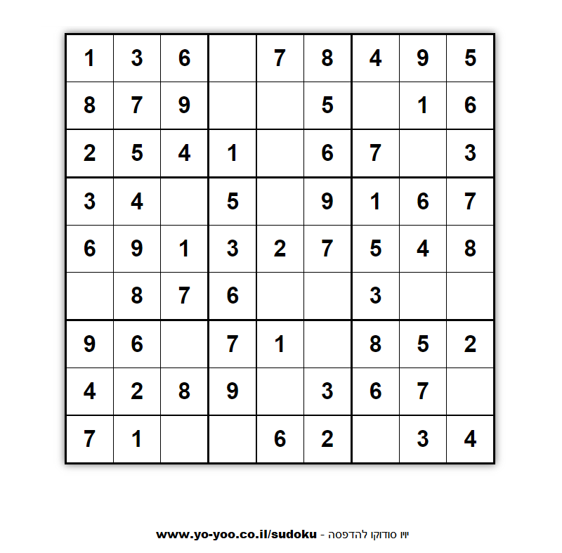 אתר סודוקו ישראלי עם מאות סודוקו להדפסה, סודוקו בעברית, אתר סודוקו בעברית חינם !