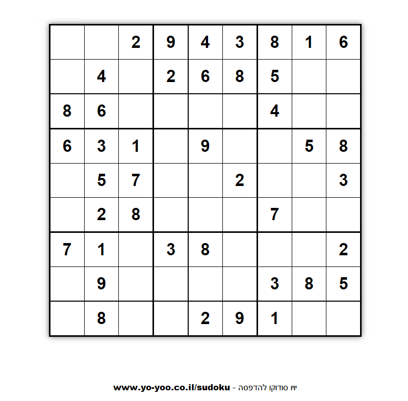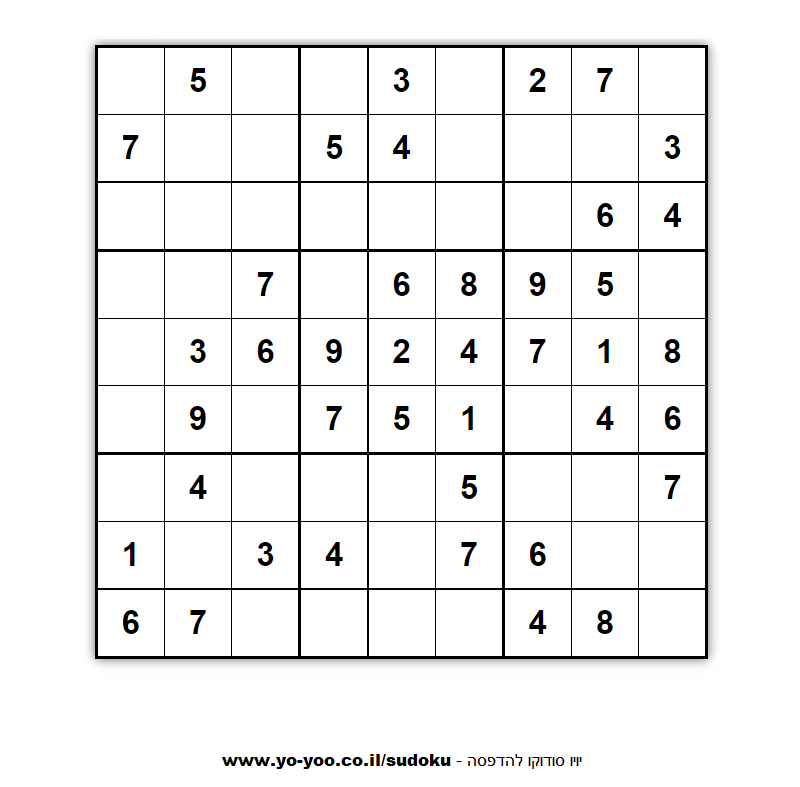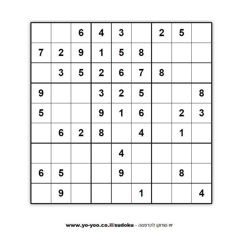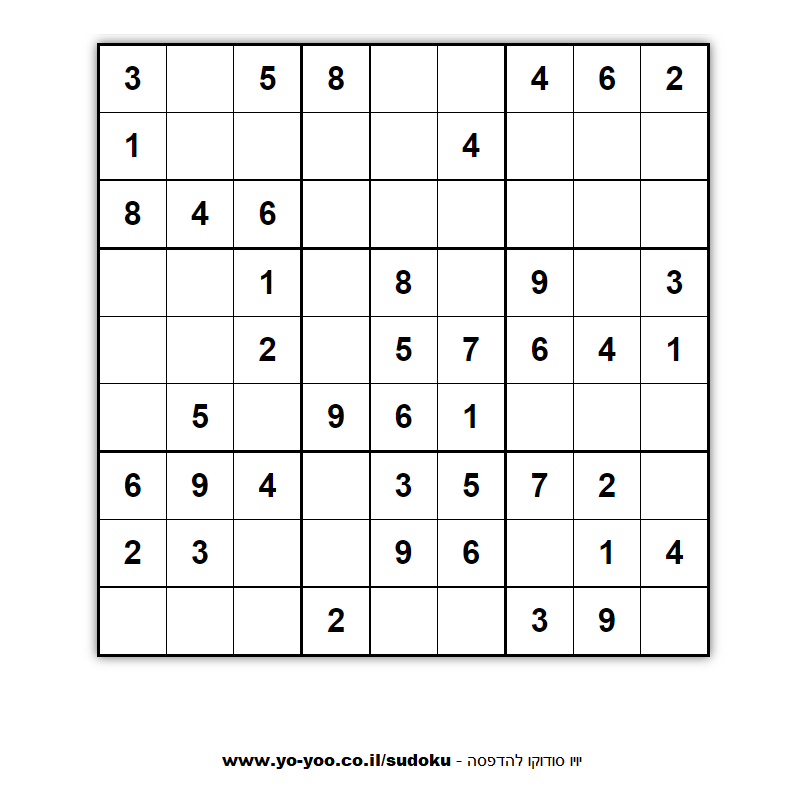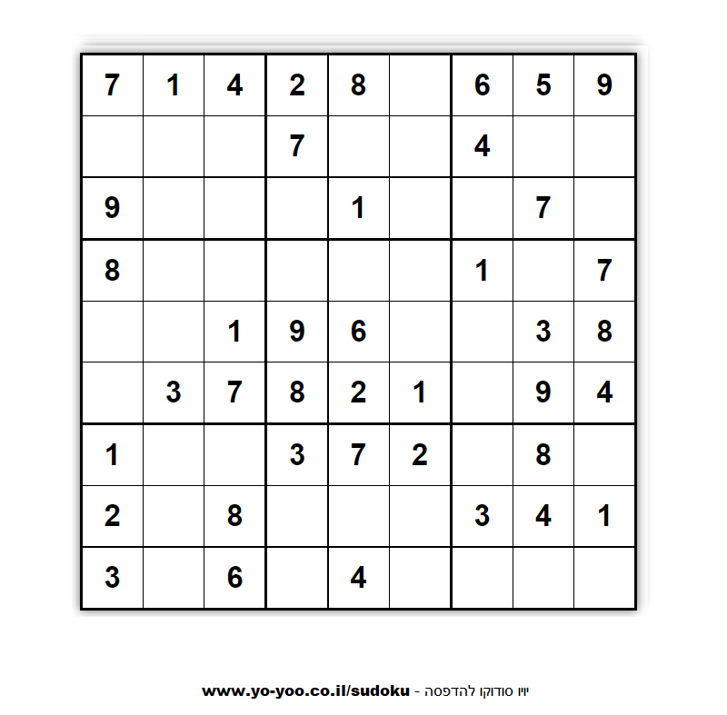 אתר סודוקו ישראלי עם מאות סודוקו להדפסה, סודוקו בעברית, אתר סודוקו בעברית חינם !