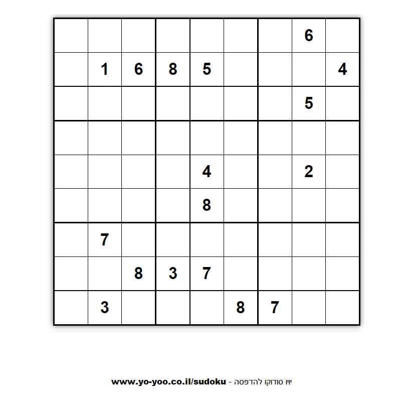 אתר סודוקו ישראלי עם מאות סודוקו להדפסה, סודוקו בעברית, אתר סודוקו בעברית חינם !