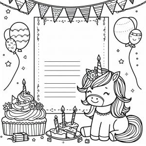 כרטיס ברכה חד קרן ועוגה לצביעה כרטיס ברכה חד קרן ועוגה לצביעה