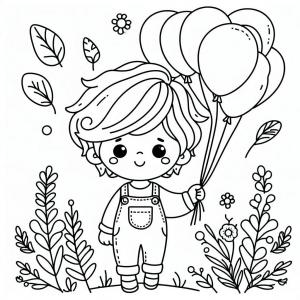 ילד עם בלונים לצביעה ילד עם בלונים לצביעה