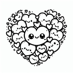 ציור של לבבות לצביעה, איור של לבבות להדפסה לצביעה לילדים