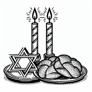 תמונה של לשבת בשחור לבן להדפסה בחינם. דף עבודה לצביעה של לשבת להורדה או שמירה במחשב.