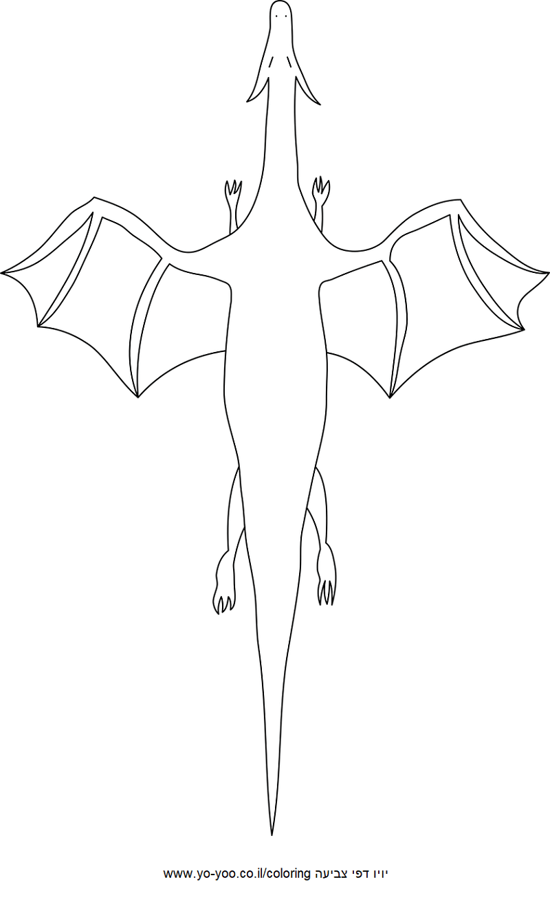 ציור של דרקון עף מלמעלה לצביעה, איור של דרקון עף מלמעלה להדפסה לצביעה לילדים