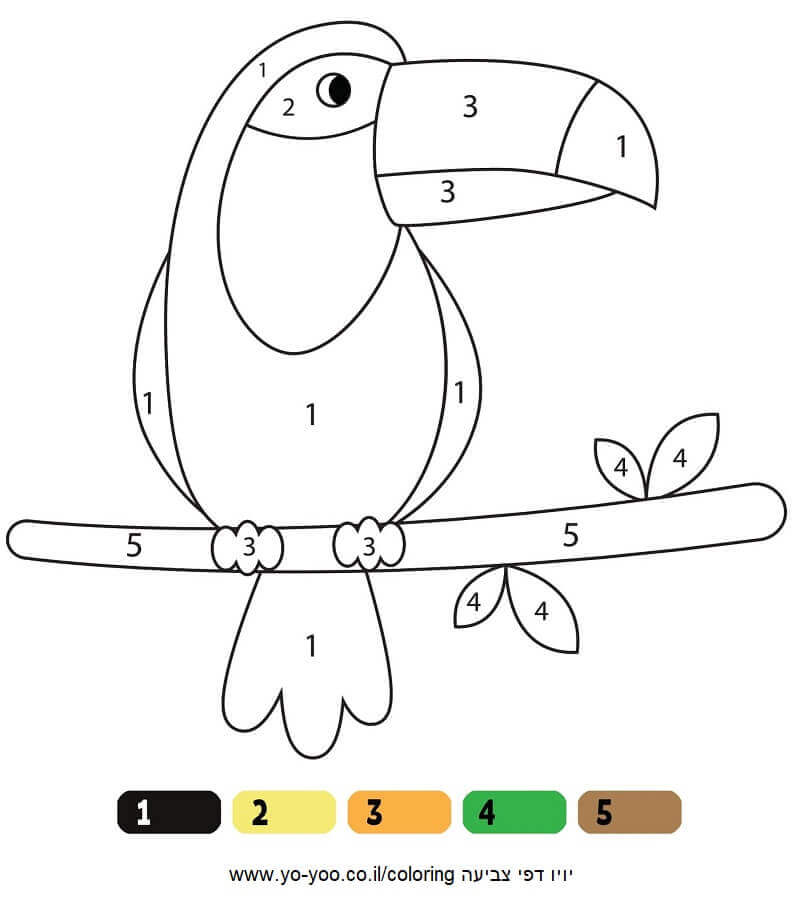 דף צביעה של תוכי - דף צביעה של תוכי חמוד שאפשר לצבוע לפי מספרים . דף צביעה להדפסה או להורדה בחינם ! כנסו והתחילו לצבוע !