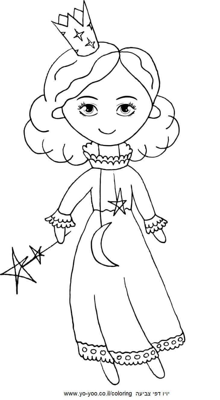 דף צביעה של פיה עם כתר להדפסה או להורדה בחינם, למחשב או לטלפון (אפשר להדפיס גם מהטלפון) ציור של פיה עם כתר לצביעה, איור של פיה עם כתר להדפסה לצביעה לילדים