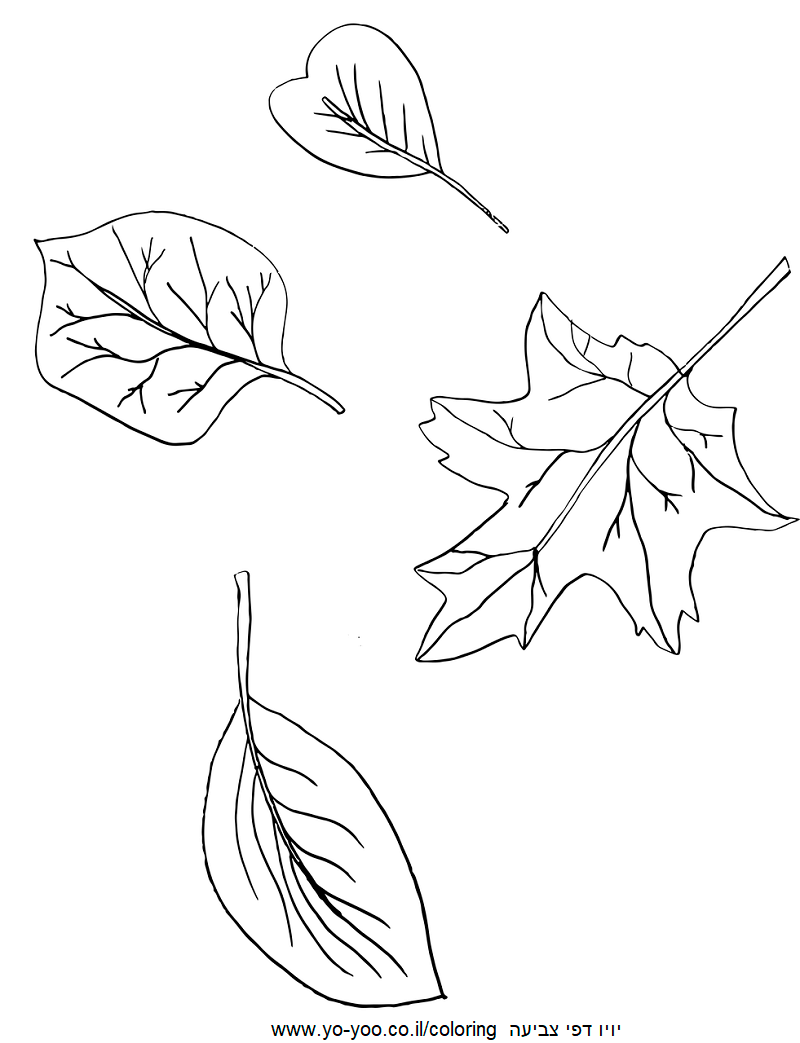 ציור של עלים בשלכת לצביעה, איור של עלים בשלכת להדפסה לצביעה לילדים
