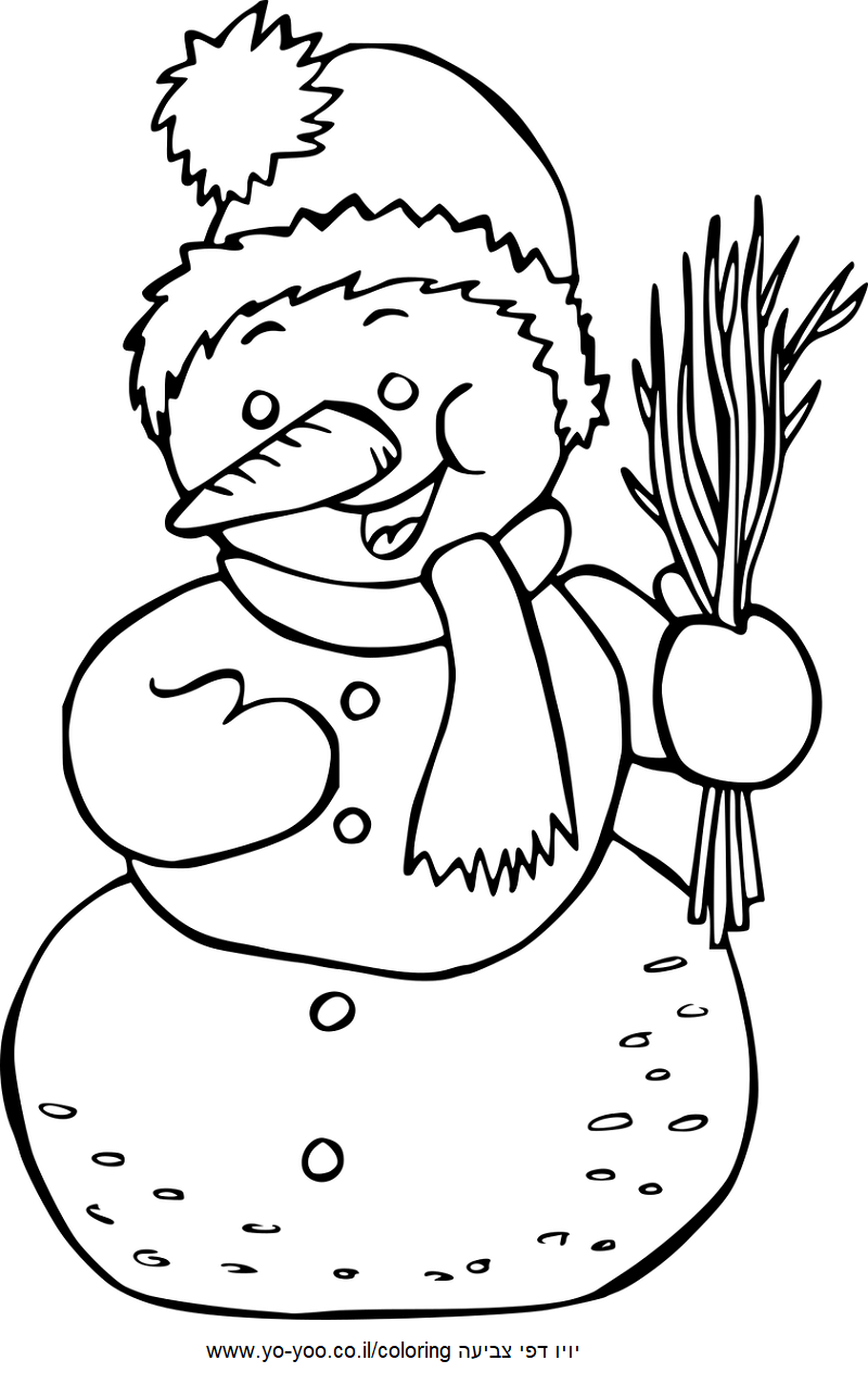 ציור של איש שלג חמוד לצביעה, איור של איש שלג חמוד להדפסה לצביעה לילדים