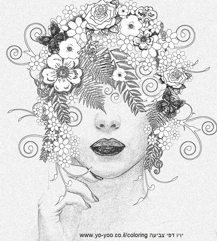 דף צביעה אביבי - דף צביעה יפה לעונת האביב, בחורה עם פרחים לצביעה. דף צביעה להדפסה או להורדה בחינם ! כנסו והתחילו לצבוע !
