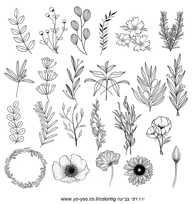 דף צביעה לאביב - דף צביעה אביבי, דף צביעה לעונת האביב מלא פרחים יפים שמתאימים לאביב. דף צביעה להדפסה או להורדה בחינם ! כנסו והתחילו לצבוע !