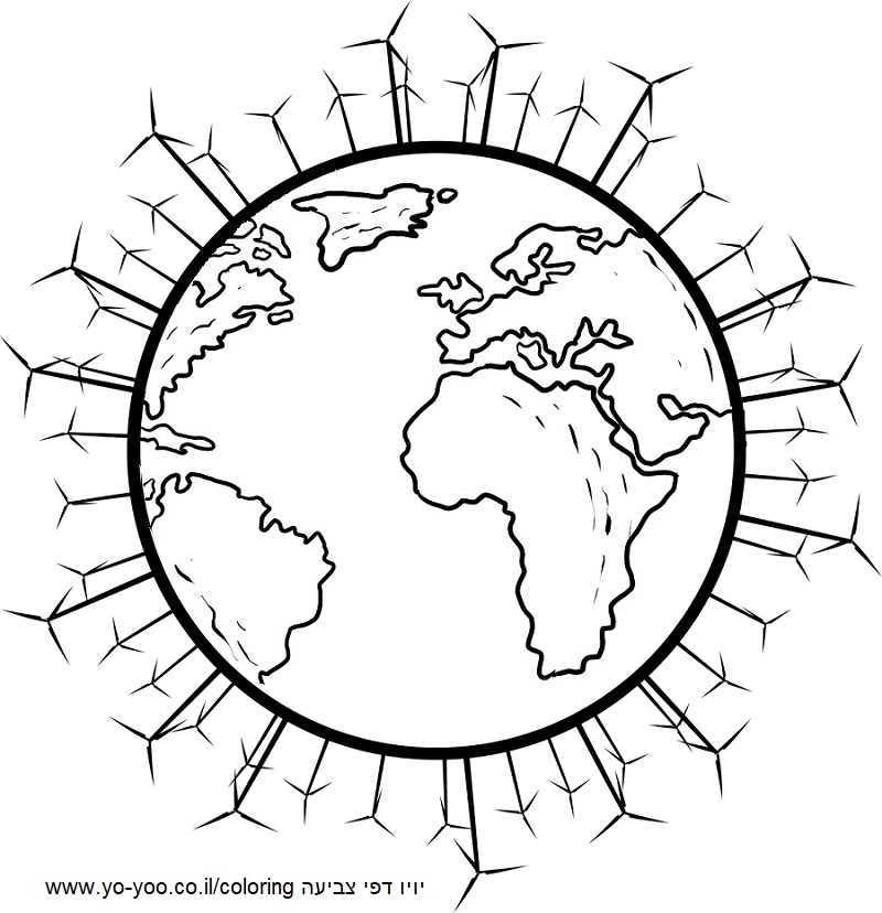 שמירה על כדור הארץ - דף צביעה של שמירה על כדור הארץ, הקמת טורבינות רוח לייצור חשמל ירוק לשמירה על כדור הארץ. דף צביעה להדפסה או להורדה בחינם ! כנסו והתחילו לצבוע !