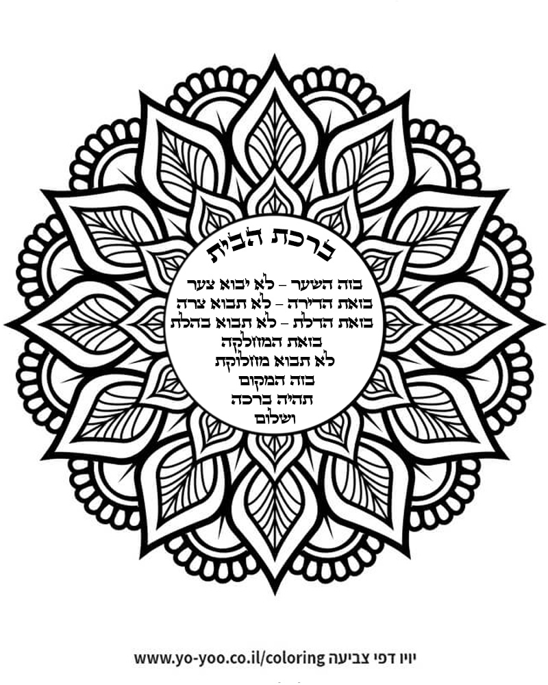 דף צביעה של ברכת הבית להדפסה או להורדה בחינם, למחשב או לטלפון (אפשר להדפיס גם מהטלפון) ציור של ברכת הבית לצביעה, איור של ברכת הבית להדפסה לצביעה לילדים