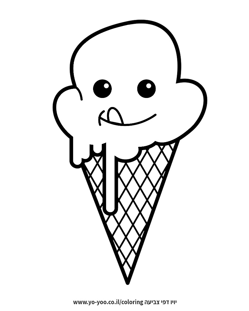 ציור של גלידה חמודה לצביעה, איור של גלידה חמודה להדפסה לצביעה לילדים