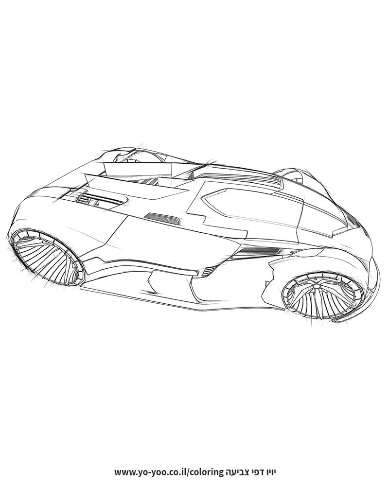 מכונית עתיד לצביעה - דף צביעה של מכונית מהעתיד, דף צביעה של מכונית עתידנית יפה בצורת מכונית מירוץ מגניבה. דף צביעה להדפסה או להורדה בחינם ! כנסו והתחילו לצבוע !