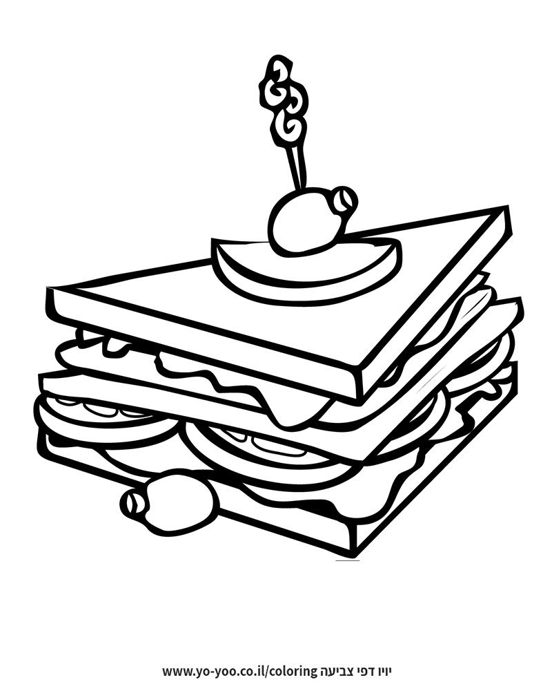 דף צביעה סנדוויץ - דף צביעה של כריך לילדים, ציור של סנדוויץ לצביעה להדפסה בחינם, צבעו את הסנדוויץ' המגניב . דף צביעה להדפסה או להורדה בחינם ! כנסו והתחילו לצבוע !