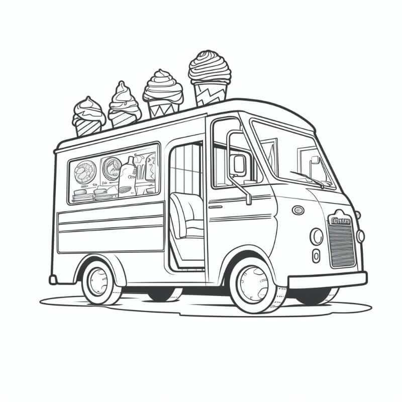 ציור של ציור אוטו גלידה לצביעה, איור של ציור אוטו גלידה להדפסה לצביעה לילדים