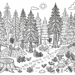 דף צביעה תמונה של יער וחיות לצביעה בחינם להדפסה או צביעה אונליין