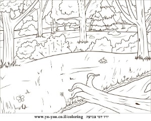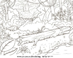דף יער וחיות לצביעה , יער וחיות להדפסה לצביעה, מתאים לדף בגודל A4 להדפסה בחינם