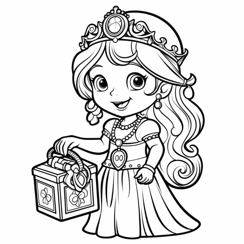 דף צביעה של נסיכה קטנה להדפסה או להורדה בחינם, למחשב או לטלפון (אפשר להדפיס גם מהטלפון) ציור של נסיכה קטנה לצביעה, איור של נסיכה קטנה להדפסה לצביעה לילדים