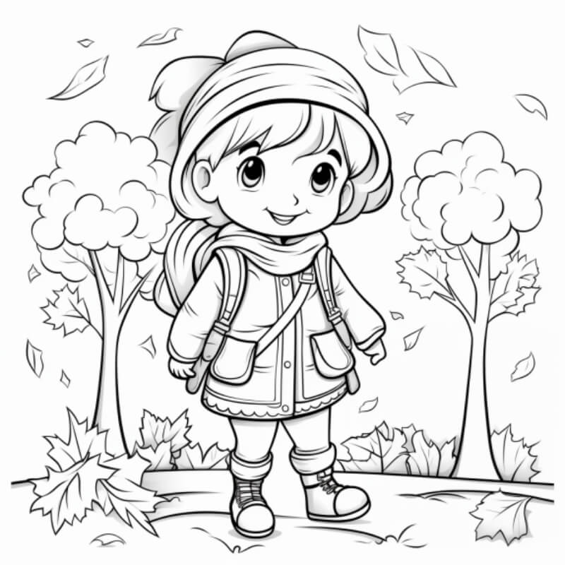 דף צביעה להדפסה או להורדה חינם של ילד בסתיו
