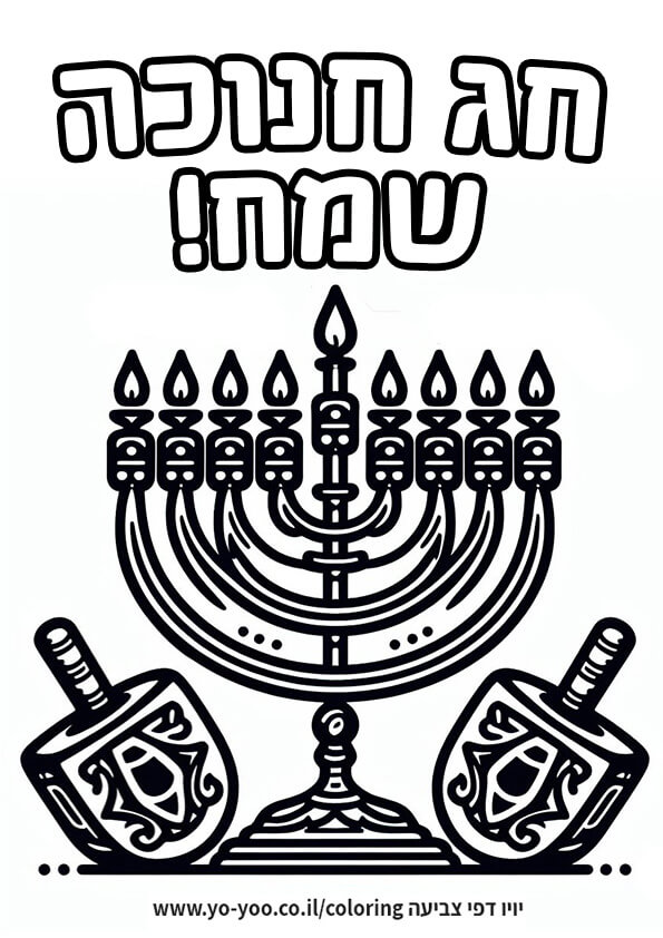דף צביעה של לחג חנוכה להדפסה או להורדה בחינם, למחשב או לטלפון (אפשר להדפיס גם מהטלפון) ציור של לחג חנוכה לצביעה, איור של לחג חנוכה להדפסה לצביעה לילדים