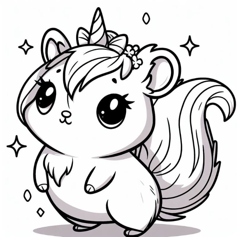 ציור של אוגר חד קרן לצביעה, איור של אוגר חד קרן להדפסה לצביעה לילדים