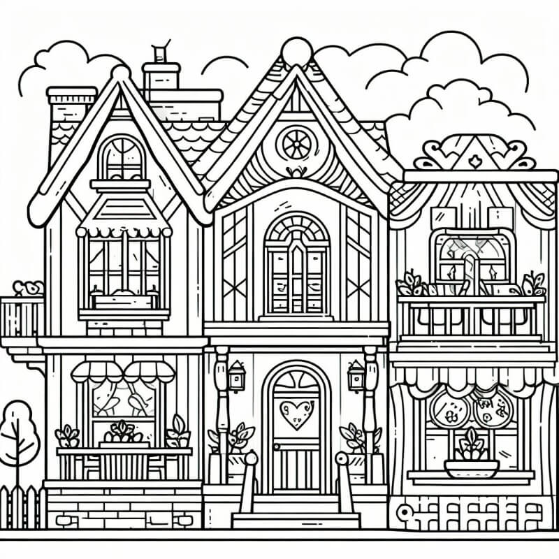 ציור של בית הבובות לצביעה, איור של בית הבובות להדפסה לצביעה לילדים