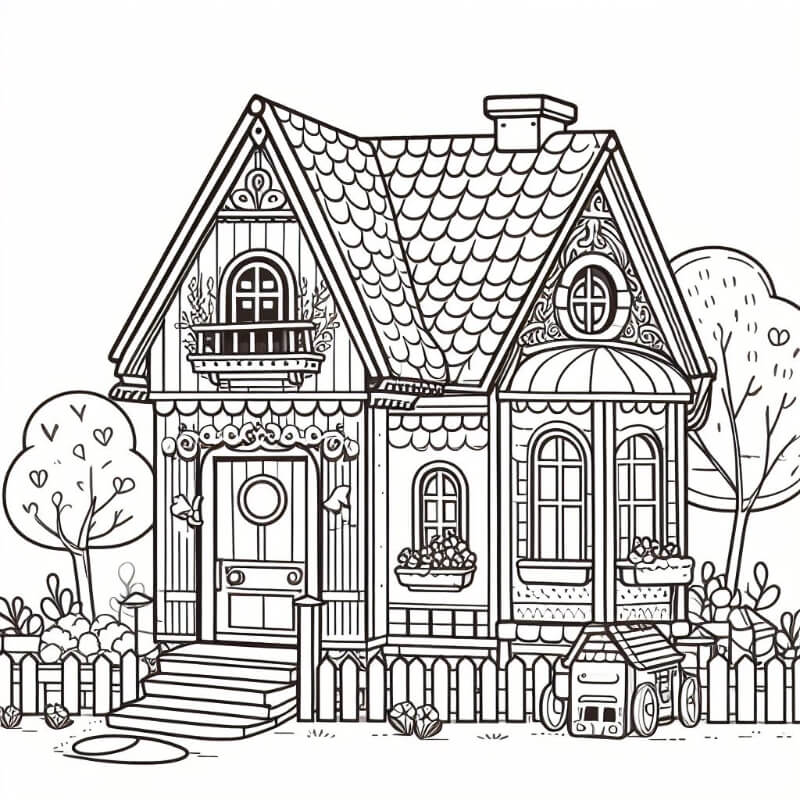 בית יפה לצביעה - דף צביעה של בית יפה להדפסה בחינם, ציור של בית יפה לצביעה לילדים בחינם