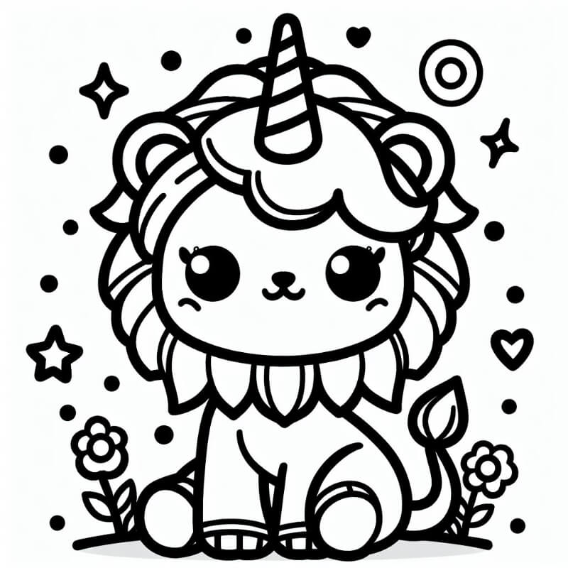 ציור של אריה חד קרן לצביעה, איור של אריה חד קרן להדפסה לצביעה לילדים