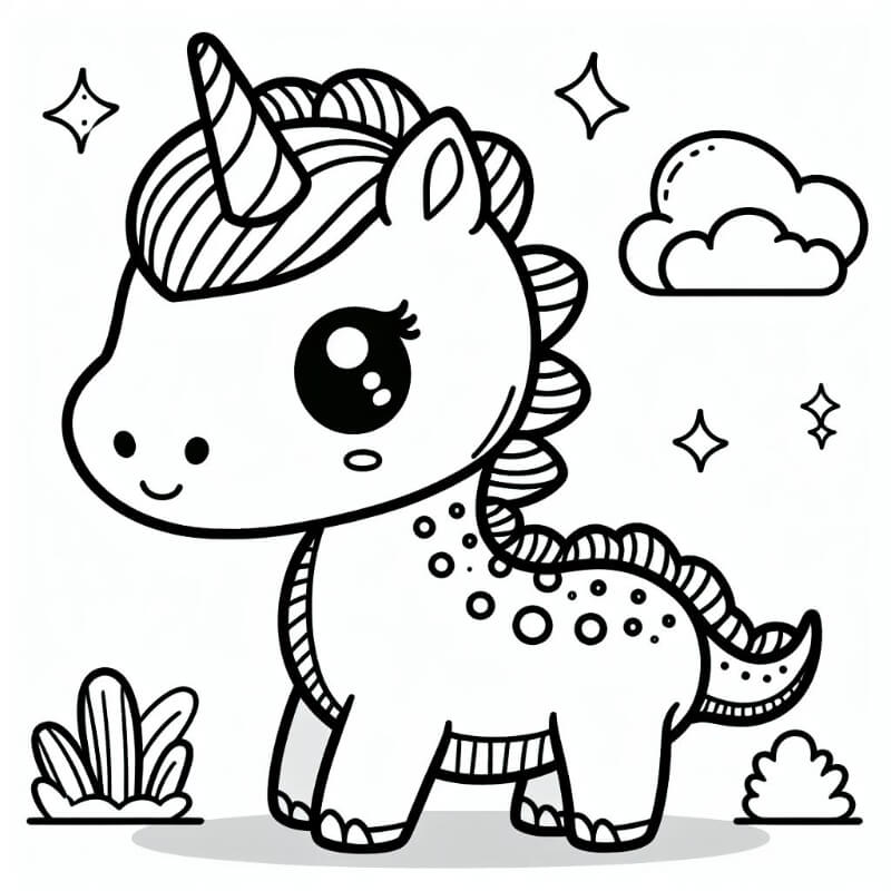 דף צביעה להדפסה או להורדה חינם של דינוזאור חד קרן