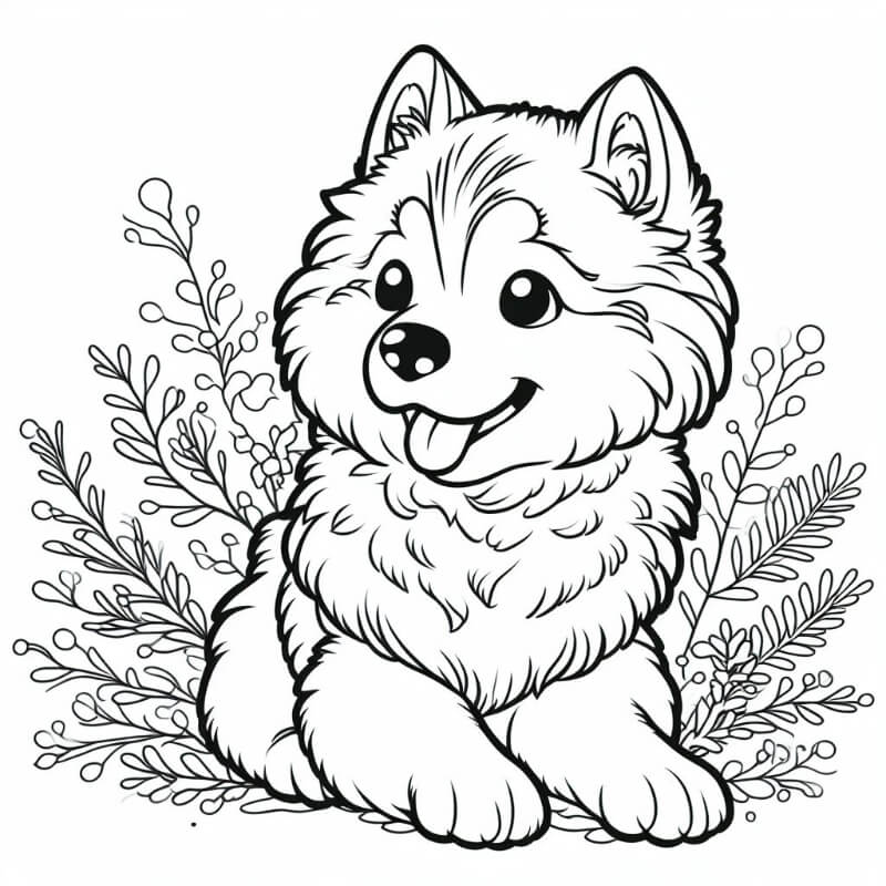 ציור של האסקי לצביעה, איור של האסקי להדפסה לצביעה לילדים