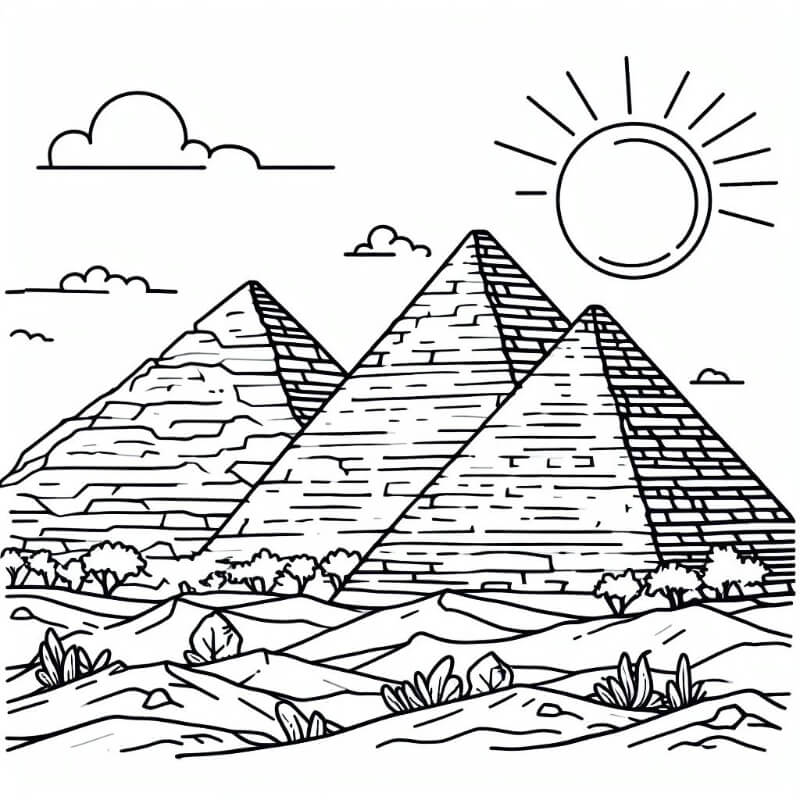 ציור של הפירמידות לצביעה, איור של הפירמידות להדפסה לצביעה לילדים