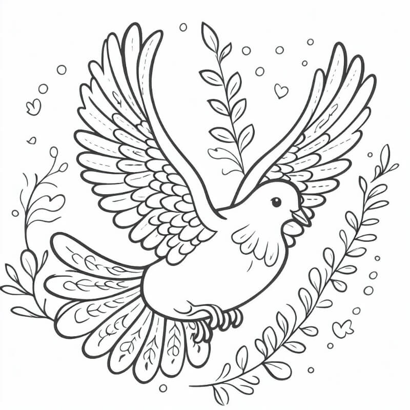 ציור של יונה לצביעה, איור של יונה להדפסה לצביעה לילדים