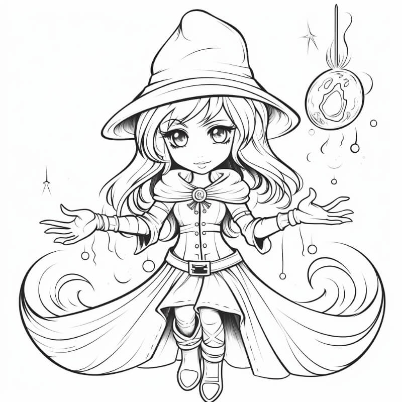 ציור של מכשפה לצביעה, איור של מכשפה להדפסה לצביעה לילדים