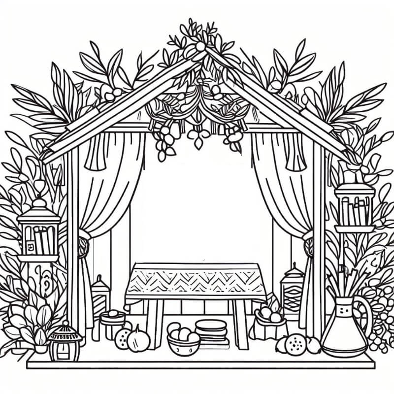ציור של סוכה לצביעה, איור של סוכה להדפסה לצביעה לילדים