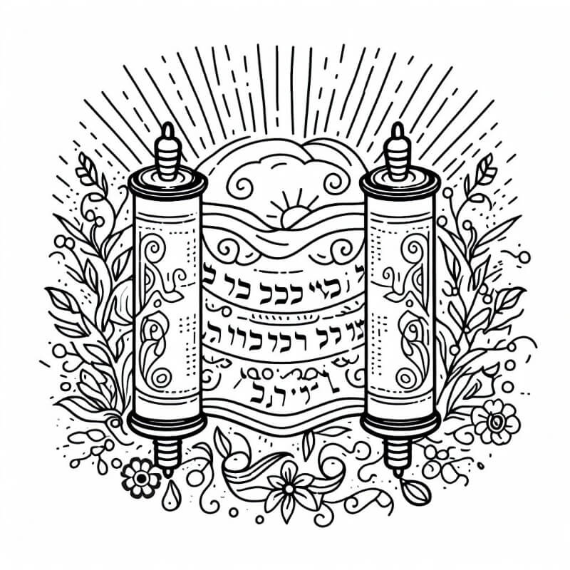 דף צביעה תמונה של דף צביעה של ספר תורה בחינם להדפסה או צביעה אונליין