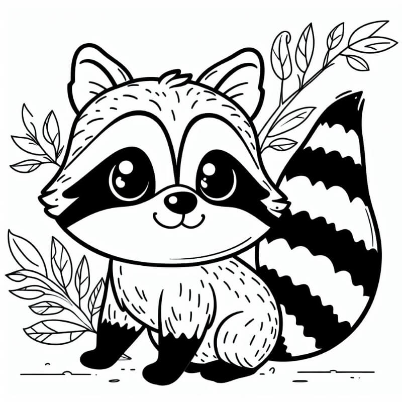 ציור של רקון לצביעה, איור של רקון להדפסה לצביעה לילדים