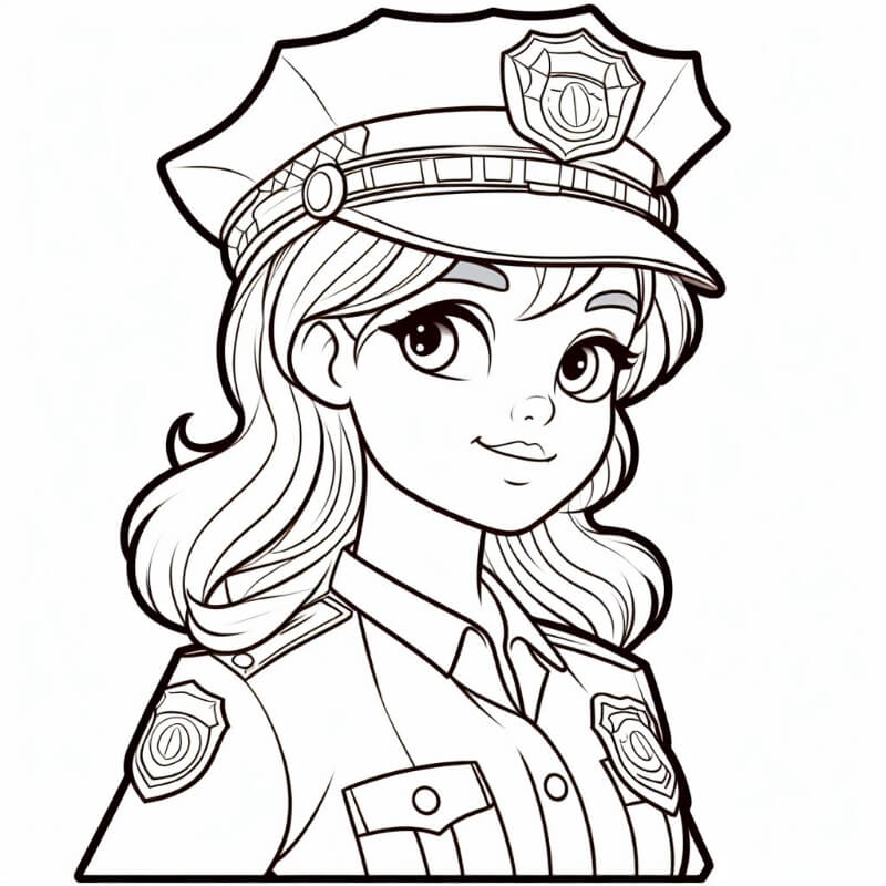 ציור של שוטרת חמודה לצביעה, איור של שוטרת חמודה להדפסה לצביעה לילדים