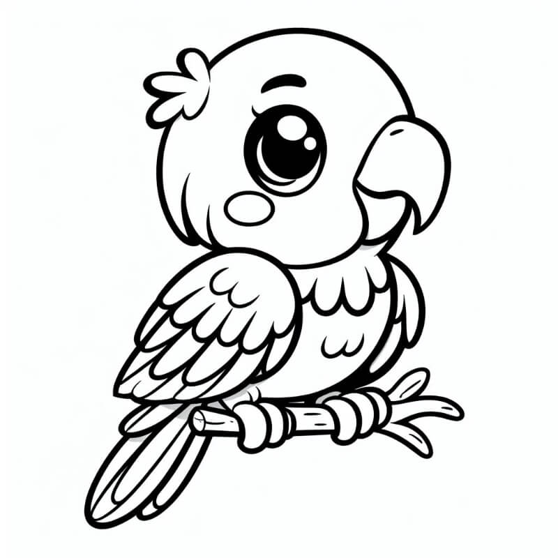 ציור של תוכי לצביעה, איור של תוכי להדפסה לצביעה לילדים