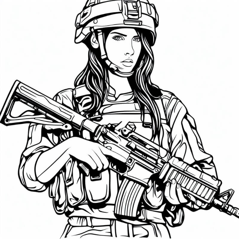 דף צביעה של חיילת ישראלית להדפסה או להורדה בחינם, למחשב או לטלפון (אפשר להדפיס גם מהטלפון) ציור של חיילת ישראלית לצביעה, איור של חיילת ישראלית להדפסה לצביעה לילדים