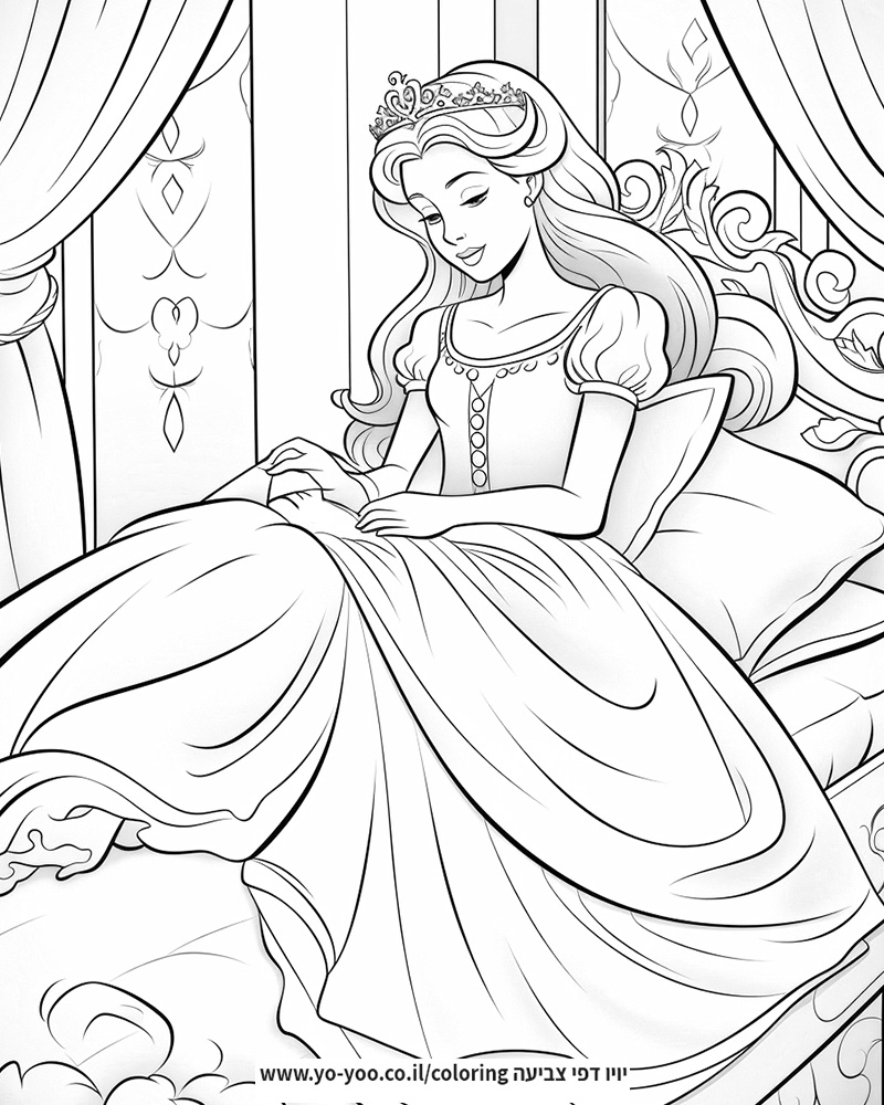 דף היפהפייה הנרדמת לצביעה , היפהפייה הנרדמת להדפסה לצביעה, מתאים לדף בגודל A4 להדפסה בחינם