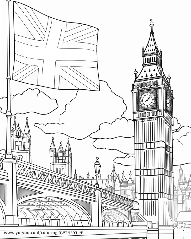 דף צביעה של לונדון להדפסה או להורדה בחינם, למחשב או לטלפון (אפשר להדפיס גם מהטלפון)
