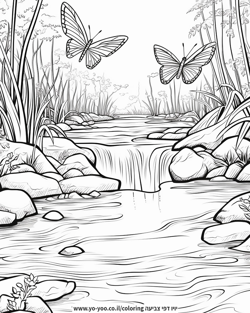 ציור של נהר הירדן לצביעה, איור של נהר הירדן להדפסה לצביעה לילדים