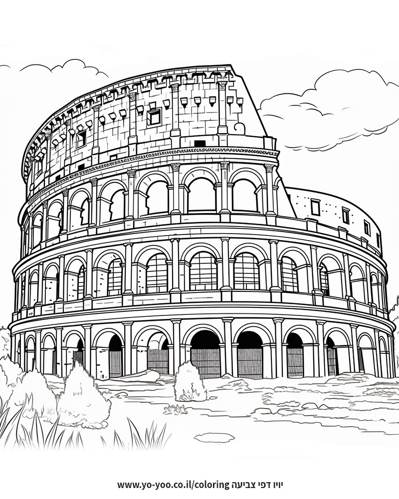 דף צביעה של רומא איטליה להדפסה או להורדה בחינם, למחשב או לטלפון (אפשר להדפיס גם מהטלפון)