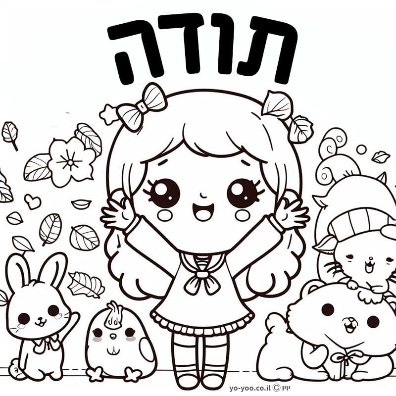 דף צביעה של ילדה עם תודה להדפסה או להורדה בחינם, למחשב או לטלפון (אפשר להדפיס גם מהטלפון) ציור של ילדה עם תודה לצביעה, איור של ילדה עם תודה להדפסה לצביעה לילדים